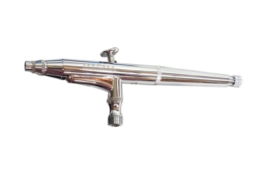 Jest to aerograf dwufunkcyjny co oznacza, że przyciskiem regulujemy zarówno ilość podawanego powietrza (ruchy w dół i w górę) jak również ilość farby (ruchy do tyłu i do przodu).