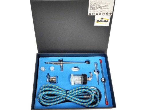 Aerograf marki MAGMA TG-134K z dyszami 0,2 , 0,3 , 0,5 oraz iglicami.