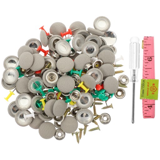 ✅50 x klamry 50 x śruby 50 x podstawy 50 x pinezki 1 x śrubokręt 1 x miarka