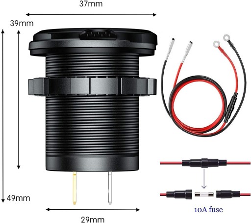 - To gniazdo ładowania USB pasuje uniwersalnie do samochodów DC 12-24V, łodzi, łodzi, motocykli, ATV, RV itp.