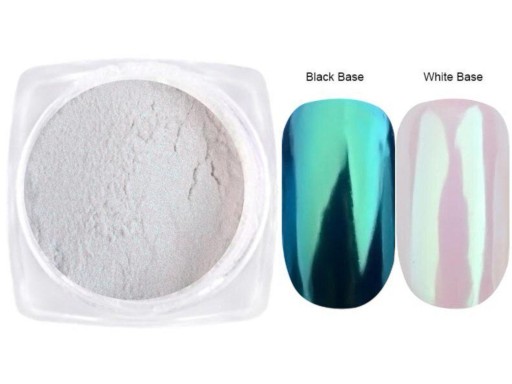 Pyłek tworzy na paznokciu lekko perłową lustrzaną, mocno nabłyszczającą taflę. która w zależności od kąta padania światła mieni się w inny kolor. Nałożony na kolor czarny daje zdecydowanie wyraźny efekt. Doskonale prezentuje się na jasnych pastelowych kolorach lakieru a także na zdecydowanych barwach. Pyłek ten nie maskuje koloru lakieru lecz mocno go nabłyszcza dodając delikatnego opalizowania. Dostępny w 7 kolorach (odcieniach). Przy zakupie prosimy podać numer koloru, podana cena jest za szt.