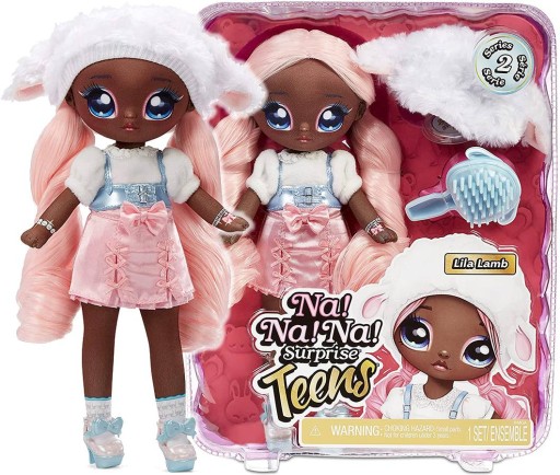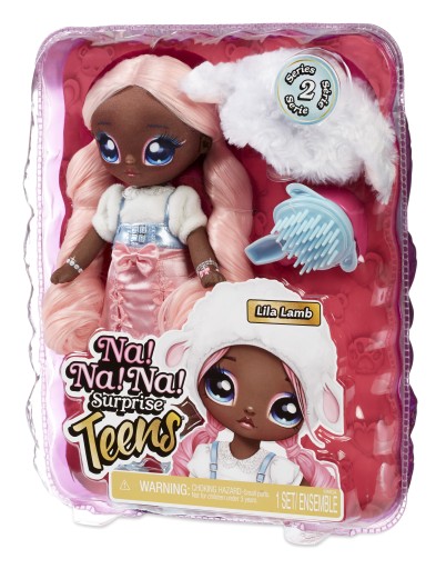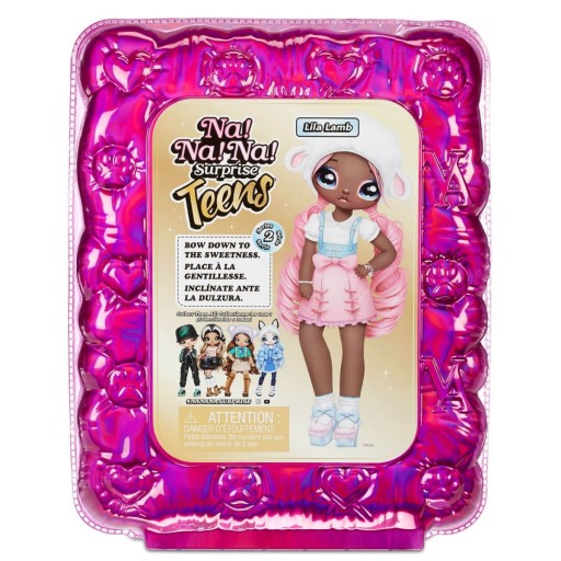 Na Na Na Surprise Teens Doll to piękne, ok. 28-centymetrowe miękkie lalki o dużej osobowości i olśniewającym stylu. Lila Lamb jest inspirowana owieczką. Ma długie różowe włosy spięte w dwa kucyki oraz nadrukowane detale na twarzy i ubraniu. Ubrana jest w puszystą czapkę z uszkami oraz szykowne szpilki. Laleczka ma również przypinkę z imieniem, datą urodzenia i podstawowymi informacjami. Laleczki z tej serii są pakowane w pudełka z okienkiem, aby można było zobaczyć wszystkie szczegóły.