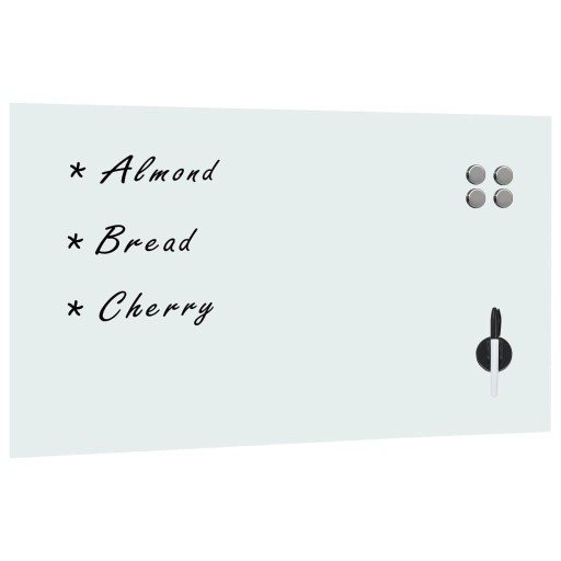 Suchościeralna tablica magnetyczna ze szkła ma wszystkie zalety tradycyjnej tablicy, ale w bardziej nowoczesnej i przyjaznej dla środowiska formie. Tablica zawiera bezpieczne szkło hartowane, które jest odporne na osady, zarysowania i wygięcia. Możesz przymocować na niej dokumenty lub notatki za pomocą dołączonego magnesu. Ponadto możesz po niej pisać suchościeralnym pisakiem, który łatwo się ściera przy użyciu dołączonej gąbki. Wymagane akcesoria do montażu na ścianie są również dołączone, dzięki czemu z łatwością przymocujesz tablicę na dowolnej ścianie w swoim domu, biurze lub w szkole. Tablica jest również łatwa w montażu.