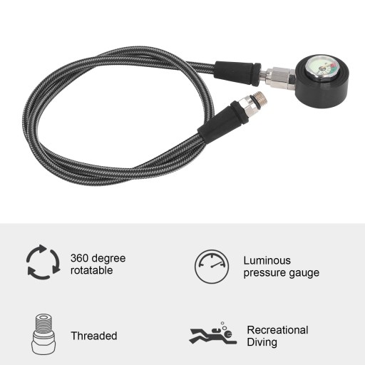 Cecha: 1. Trwały materiał: Wykonany z węża tkanego z włókna węglowego i stopu aluminium, manometr jest rygorystycznie testowany i certyfikowany, aby zapewnić nurkom doskonałą jakość i bezpieczeństwo.