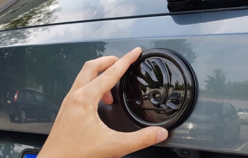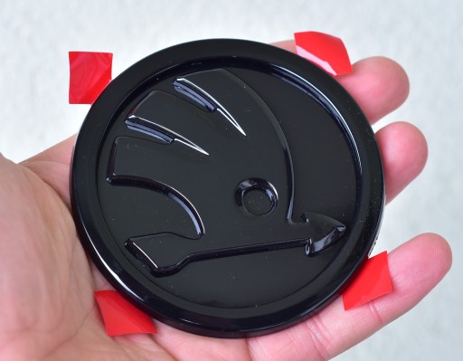 Emblemat posiada z tyłu taśmę samoprzylepną oraz 3 bolce montażowe ułatwiające centrowanie.