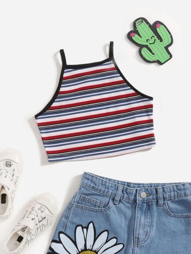 B34P035 РЕБРИСТАЯ ВЕРХНЯЯ ПРЯМЫЕ ПОЛОСКИ SHEIN 122