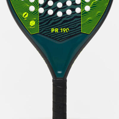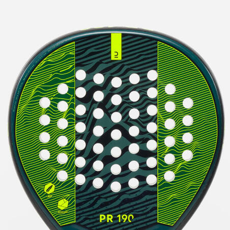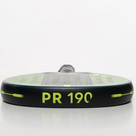 Zaprojektowana dla początkujących padelistów szukających lekkiej rakiety z dużym sweet spotem, pozwalającym na maksymalny komfort gry. Kuikma PR190 ma okrągły kształt dla lepszej kontroli, waży od 301 do 320 gramów i ma balans na rączkę dla lepszej manewrowości. Rakieta z włókna szklanego i pianki EVA.