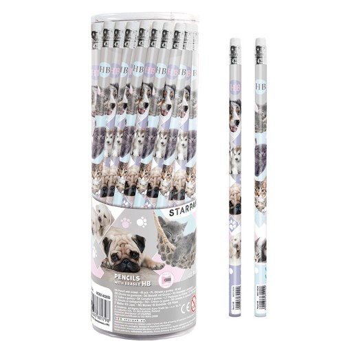 Przybory Biurowe RZECZY Do SZKOŁY OŁÓWKI Ołówek z gumką Kotki/Psy tuba Mega