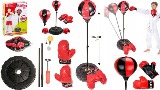 Dzięki piłce do BOKSOWANIA ze stojakiem i rękawicami otrzymasz wszystko, co potrzebne, aby zachęcić do czynnej, wykrawającej zabawy w pomieszczeniu lub na zewnątrz.