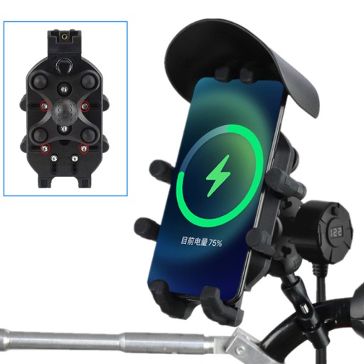 ŁADOWARKA INDUKCYJNA USB MOTOCYKLOWY UCHWYT NA TELEFON MOTOR TŁUMIK DRGAŃ