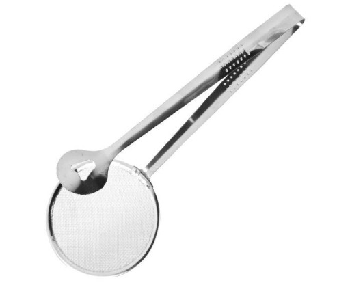 Prezentowane szczypce z sitkiem zostały wykonane z wysokiej jakości stali nierdzewnej. Są w klasycznym kształcie szczypiec, jednak z jednej strony zakończone są okrągłym sitkiem. Narzędzie służy do wyławiania smażonych na głębokim tłuszczu produktów, takich jak mięso, frytki, pączki i wiele innych. Szczypce z sitkiem to niezbędnik w każdej kuchni.