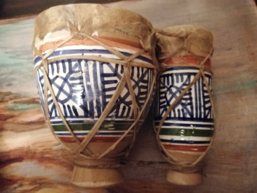 Egzotyczny  skórzany podwójny bęben. Jako  Instrument muzyczny lub  Instrument ceramiczny z ornamentem symbolicznym.