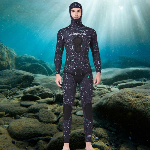 Split Design: neoprenowy kombinezon z kapturem 7 mm, łatwy do zakładania i zdejmowania, gąbka CR, odporny na ciśnienie wody, zagęszczony i utrzymujący ciepło.