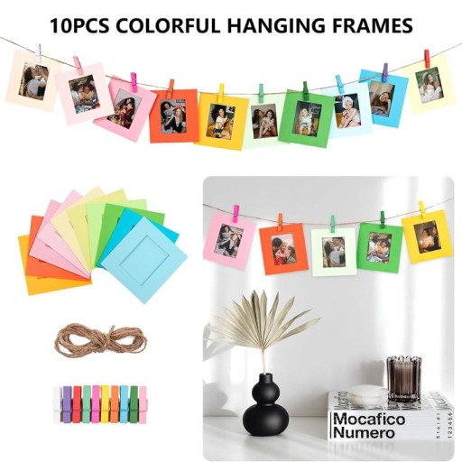5. Ramki dekoracyjne: Zestaw zawiera 10 kolorowych ramek do zawieszania i 10 ramek ze zwierzętami, w zestawie znajdują się liny i klipsy, co pozwala na wyjątkowe sposoby zaprezentowania i udekorowania domu zdjęciami.