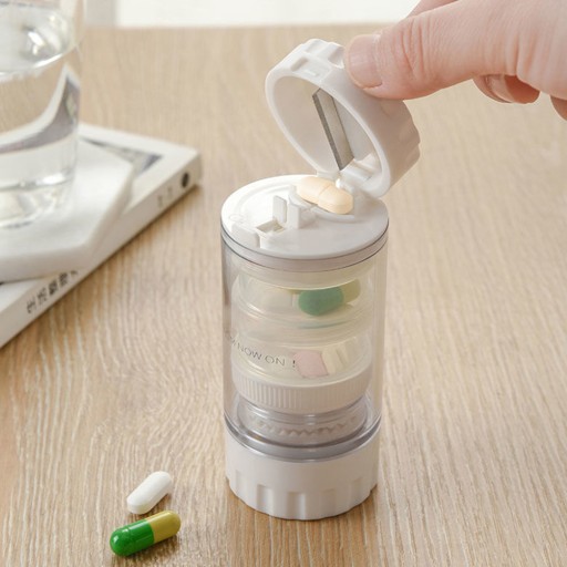 Ma cztery funkcje noża, szlifierki, pojemnika na leki i kubka na wodę i ma doskonały prosty i piękny wygląd.