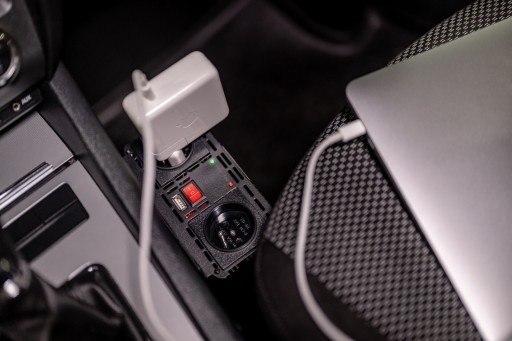 - Umożliwia korzystanie z gniazdka elektrycznego, w którym jedynym źródłem zasilania jest akumulator 12 V