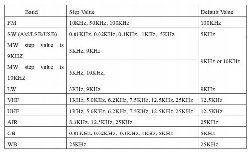 - odbiera fale średnie (MW 520-1710kHz), krótkie (SW 2.3-30MHz, łącznie z pasmem CB), FM (64-108MHz np. Radio Zet, RMF FM), VHF (20-250MHz np. pasmo morskie VHF, kolejowe, służby), UHF (250-999MHz)