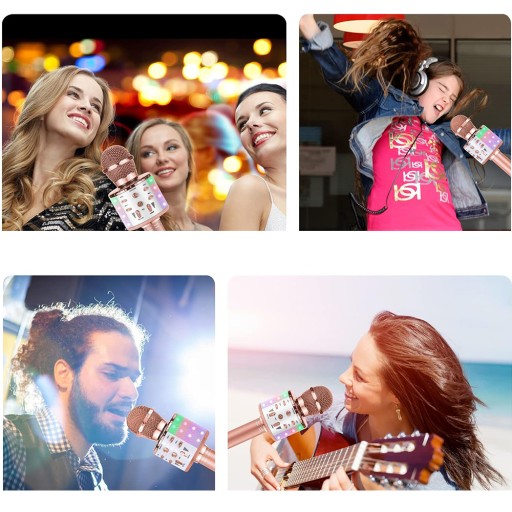 【Wielofunkcyjny mikrofon 3 w 1】 Nie tylko mikrofon do karaoke, ale także głośnik Bluetooth do odtwarzania muzyki i sztuczka, dzięki której możesz zmienić swój głos na głos dziecka, głos męski, głos głęboki i słodki w tych czterech trybach.