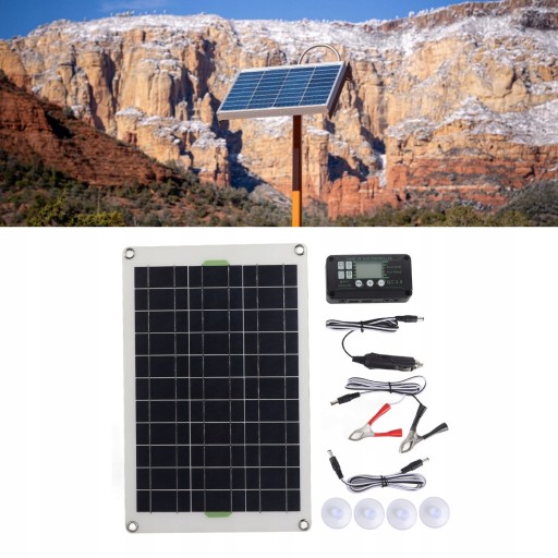 4. Co otrzymasz: jeden panel słoneczny o mocy 50 W, jeden kontroler 30 A, jeden przewód łączący, cztery przyssawki, jeden kabel do ładowania samochodu i jeden zacisk wyjściowy.