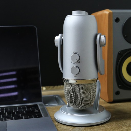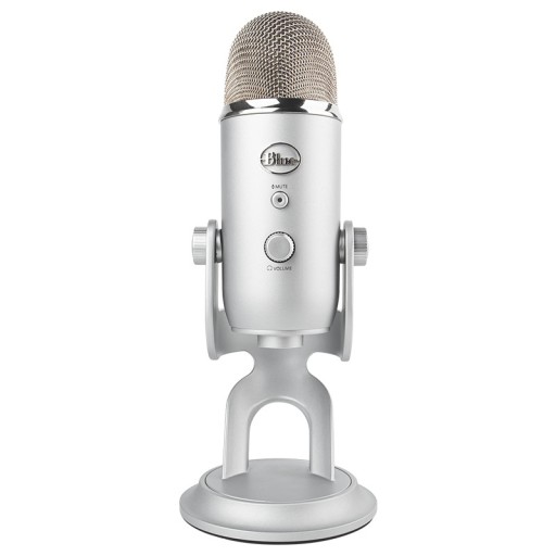 Niebieski mikrofon Yeti USB do nagrywania, przesyłania strumieniowego, gier, podcastingu na PC i Mac, mikrofon pojemnościowy do laptopa lub komputera, efekty VO! Regulowana podstawa — srebrna