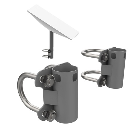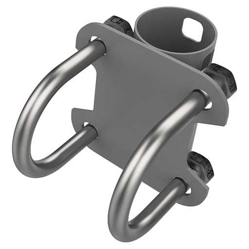 4. ŁATWY MONTAŻ: Po prostu włóż słupek anteny do podstawy w kształcie litery U, zaciśnij wspornik na poprzeczce lub filarze i zabezpiecz go dokręcając śruby.