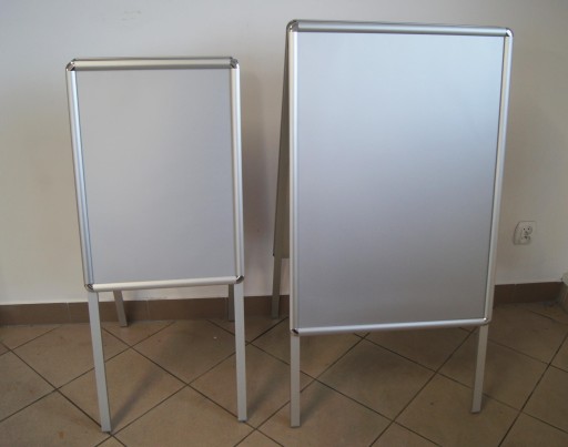 Prosta i skuteczna forma reklamy. Zwróć uwagę przechodniów na Twoją ofertę. Potykacze aluminowe są zbudowane z aluminiowej konstrukcji i ramki OWZ (otwórz, wymień, zamknij). W ramkę należy włożyć plakat reklamowy. Aluminium to lżejszy materiał od drewna. Łatwiej będzie przenosić reklamę przed sklep, lokal. W potykaczach reklamowych, aby zapewnić im dodatkowąa stabilność stosuję się sprężyny lub podstawy wodne waterbase. Wymiana plakatu jest bardzo prosta. Plakat musi zostać zaprojektowany przez grafika. Druk plakatu trzeba zamówić w drukarni. Plakaty nie mają ograniczeń co do treści, tła. Nie wymają dodatkowych pisaków. Koszty plakatu należy brać pod uwagę przy wyborze potykacza.