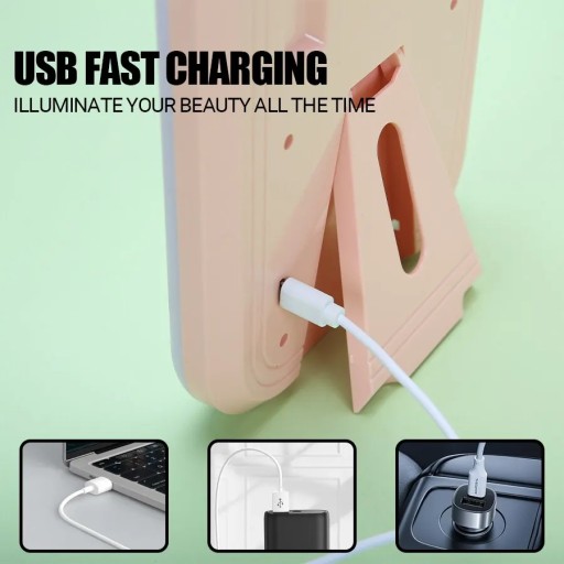 1.This mirror, with light, allows you to see more clearly without hurting your eyes. The foldable design saves space and is easy to carry.