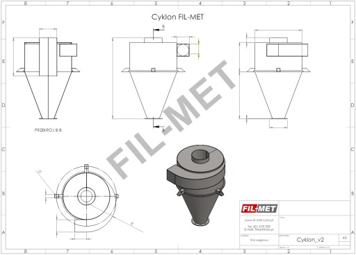 Istnieje możliwość wykonania modelu cyklona według projektu klienta, w takim celu proszę o naniesienie wymiarów na projekt: