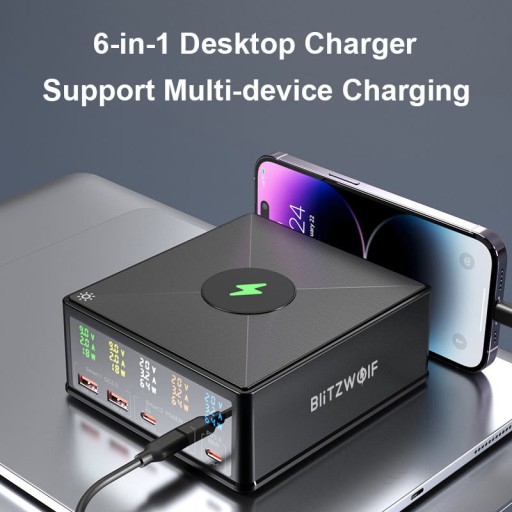 ŁADOWARKA SIECIOWA BLITZWOLF 868H, 2XUSB-A, 3XUSB TYPU C, 160W