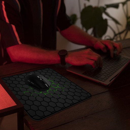 Podkładka pod mysz wykonana jest z wodoodpornej tkaniny połączonej z gumą, co zapewnia nie tylko wysoką trwałość, ale także praktyczność w codziennym użytkowaniu. Wodoodporna tkanina chroni podkładkę przed wilgocią i przypadkowymi zalaniami, co jest szczególnie ważne w intensywnych warunkach pracy lub w pobliżu napojów. Gumowa podstawa dodatkowo wzmacnia strukturę podkładki, zapobiegając jej deformacji oraz zwiększa komfort użytkowania, dostosowując się do kształtu biurka i ułatwiając precyzyjne ruchy myszką.