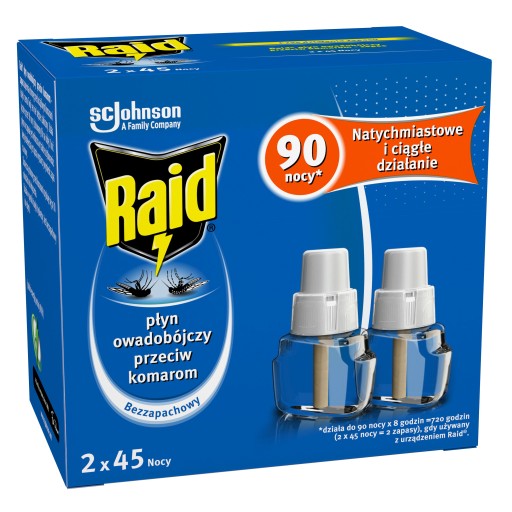 RAID 90 nocy Płyn przeciwko komarom 2 x ZAPAS 2 x 45 nocy 27 ml