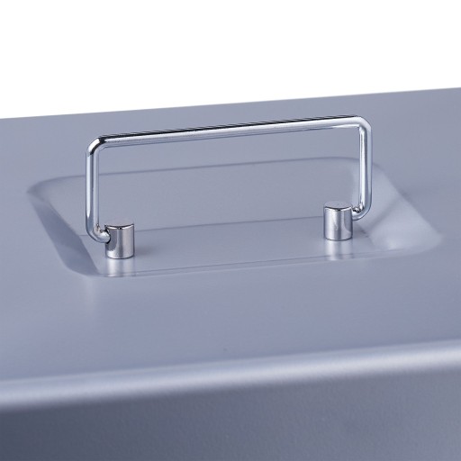 Praktyczna kasa fiskalna z wyjmowaną wkładką na monety Jeśli chcesz bezpiecznie przechowywać gotówkę, ta kaseta do liczenia pieniędzy będzie właściwym wyborem. Kasa fiskalna nadaje się do użytku w domu, a także do wykorzystania na pchlich targach, targach i innych imprezach. W wyjmowanym pojemniku na monety możesz sortować monety według wartości, dzięki czemu zawsze będziesz miał przegląd. Kaucja zabezpieczona jest 3-cyfrową kombinacją cyfr i można ją łatwo przenosić za pomocą uchwytu. Uwaga: Nie zapomnij hasła ani nie zapisz go. W przeciwnym razie nie można otworzyć kasety oszczędnościowej z zamkiem szyfrowym. Nadaje się do przechowywania gotówki, dowodów osobistych i innych dokumentów. 3-miejscowy zamek szyfrowy zapewnia bezpieczne przechowywanie. Kaseta na monety umożliwia szybkie sortowanie i wyjmowanie. Łatwy transport dzięki wysuwanemu uchwytowi. Stabilny – Wykonany z wytrzymałego materiału. żelazko z powłoką proszkową Do użytku prywatnego, na targi, imprezy szkolne i wiele więcej.Ustawianie hasłaPrzekręć zamek szyfrowy do pozycji 0-0-0Przesuń dźwignię zamka z pozycji A do pozycji BPrzekręć zamek szyfrowy na nowe żądane hasłoNaciśnij dźwignię z pozycji B z powrotem do pozycji A Kasjer na pierwszy rzut oka Wymiary wys. x szer. x gł.: 8,5 x 30,5 x 25 cm Waga: ok. 2 kg Materiał: żelazo, ABS, stal Dostępne różne kolory Zakres dostawy 1x kaseta do liczenia pieniędzy Instrukcja w języku angielskim ilustrowana instrukcja Skład materiału 60% żelazo 30% tworzywo sztuczne 10% stal RD 10047777_55