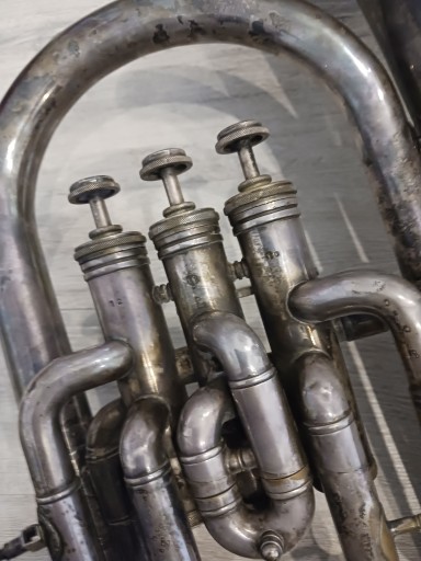 Posiadam do sprzedania baryton ENTHOFEN produkcie Holenderskiei baryton jest sprawny posiada tylko lekie wgnioty mało widoczne potszebuje tylko polerki bo jest srebrzony 508//221//824