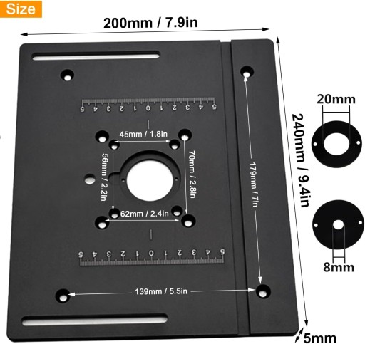 - ✅【Wysoka kompatybilność】: Ta płytka do stołu routera jest idealna do przycinania i frezowania. Płytka do wkładania szablonu frezowania ma wymiary 200 x 240 x 5 mm i pasuje do większości elektrycznych maszyn do przycinania i grawerowania. Aby upewnić się, że płytka będzie pasować do routera, sprawdź rozmiar routera na szczegółowym obrazie produktu.