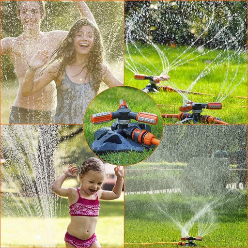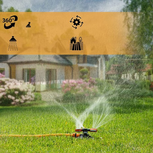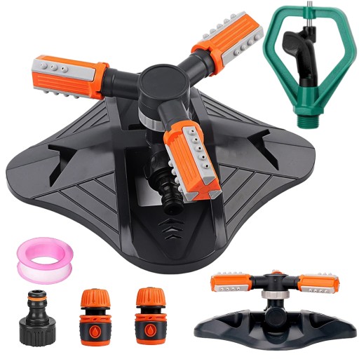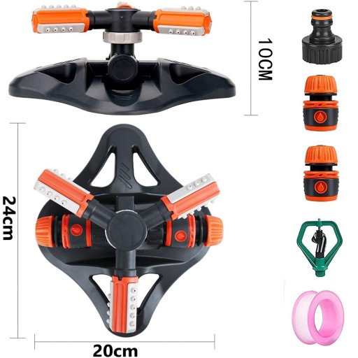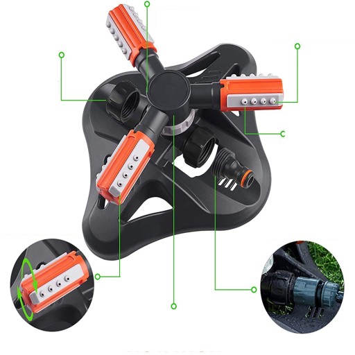 ПОВОРОТНЫЙ АВТОМАТИЧЕСКИЙ САДОВЫЙ ДОЖДЕВАТЕЛЬ 360°, ТРЕХРУЧНОЙ, 2 ФОРСУНКИ