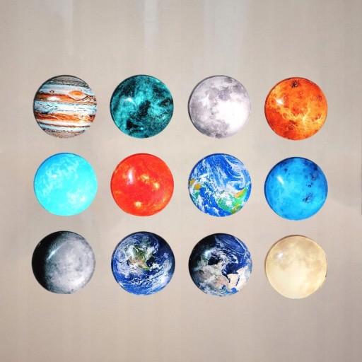 Ten przedmiot to zestaw naklejek na lodówkę z serii kosmicznej planety księżyca, które są wykonane ze szkła i magnesu. Pozwala to na użycie go w dowolnym miejscu z metalową płytą. Uwolnij ręce, aby cieszyć się muzyką, filmami i grać w gry. Poza tym może to być magnes na lodówkę dla zabawy. Dzięki dostarczonym metalowym płytkom możesz przykleić je do lodówki, ściany, tablicy, biurka itp.
