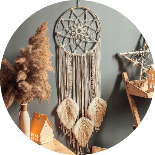 Łapacz snów zawieszony w salonie ma generalnie stosunkowo duże rozmiary, pasuje do tego samego stylu domu, a efekt jest piękny, dzięki czemu jest zarówno piękny, jak i daje dobre rezultaty.