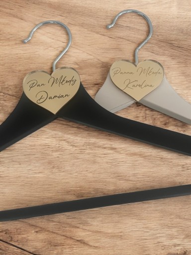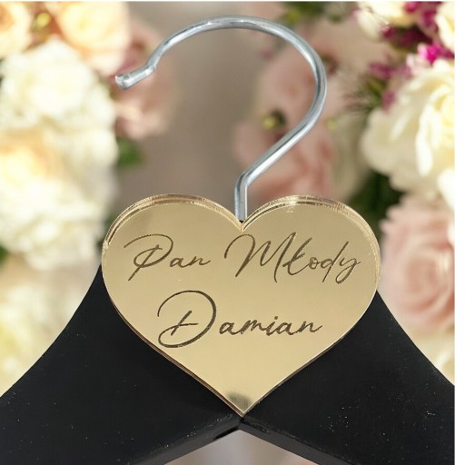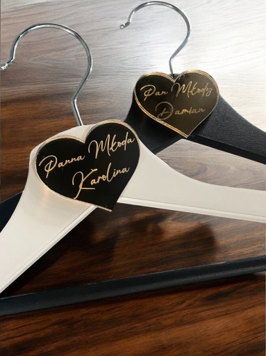 wieszaki slubne z imionami w serduszku