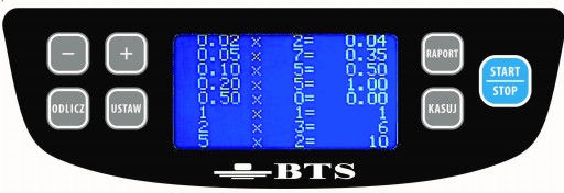 Po naciśnięciu przycisku RAPORT maszyna pokaże ilość oraz wartość zliczonych monet z podziałem na nominały.