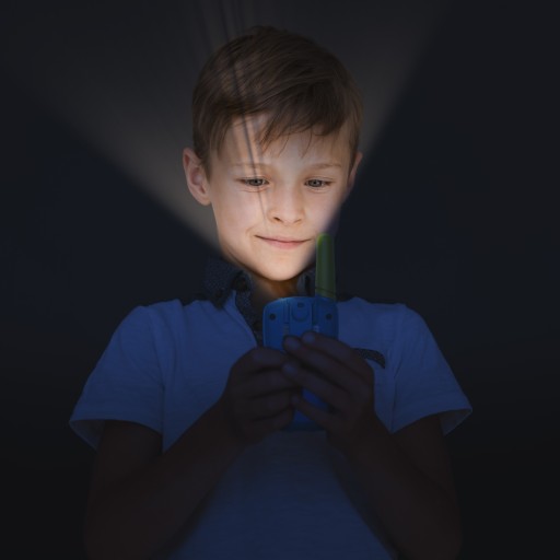 Każde walkie talkie ma swoją własną latarkę, która rozświetli Wasze przygody, nawet gdy robi się ciemno! Możecie używać jej, gdy bawicie się w chowanego po zmroku, lub kiedy chcecie oświetlić coś ciekawego w ciemnym zakątku ogrodu. Latarka sprawi, że każda nocna zabawa stanie się jeszcze bardziej ekscytująca i bezpieczna!