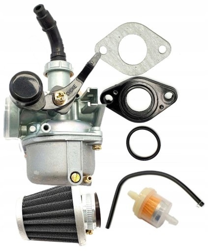 Nazwa: Gaźnik 110 ssanie ręczne Symbol: 52056KPL Masa 1szt (kg): 0 Numery oryginalne i zamienniki: Opis i dane techniczne: Najwyższej jakości zamienniki stosowane w warsztatach całego świata!!! Gaźnik do quada 50,70,110,125 Średnica pod filtr powietrza 35mm Średica króćca ssącego 19mm. - z mocowaniem do szpilek o rozstawie 48mm mierzone od środka do środka otworu, - ssanie ręczne W zestawie : Gaźnik Stożkowy tuningowy filtr powietrza Filtr paliwa z magnesem Wężyk paliwa Zestaw uszczelek i oring gaźnika