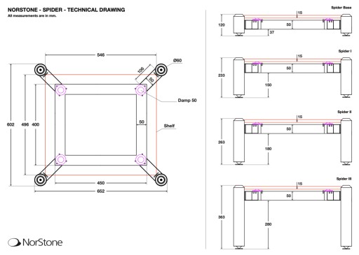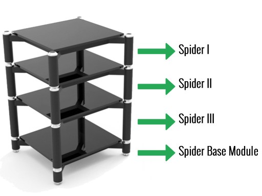 Spider jest centralną częścią instalacji hi-fi i jest przeznaczony do eksponowania, podtrzymywania i izolowania sprzętu elektronicznego. Jest to obecnie najskuteczniejszy mebel HIFI Nortsone pod względem tłumienia drgań.