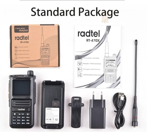 RADTEL RT-470X to profesjonalny 6-pasmowy, dwukierunkowy radiotelefon o mocy 5 watów z funkcja Dual PTT, VOX, TOT, klawiaturą DTMF i funkcją SOS. Radio posiada pamięć 256 kanałów obsługuje szyfrowanie głosów oraz VOX. Wyposażone w radio FM, latarkę oraz gniazdo typu C. Posiada baterię o pojemności 2000mA.