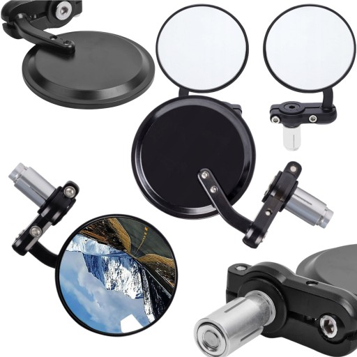 LUSTERKA MOTOCYKLOWE W KIEROWNICĘ OKRĄGŁE Czarne Cafe Racer Naked Classic