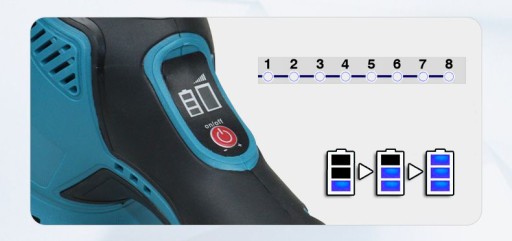 Rękojeść polerki jest ergonomicznie zaprojektowana, z odpowiednią średnicą i długością, wykonana z wygodnego gumowego materiału z antypoślizgową teksturą na zewnątrz. Średnica tarczy polerki wynosi od 125 mm do 150 mm. Wyposażona w akumulator o dużej pojemności 2 x 2000 mAh i szybką ładowarkę, zapewnia długą żywotność i oszczędność kosztów. Możesz ładować jedną baterię, podczas gdy druga jest w użyciu, co eliminuje przerwy w pracy spowodowane wyczerpaniem baterii.