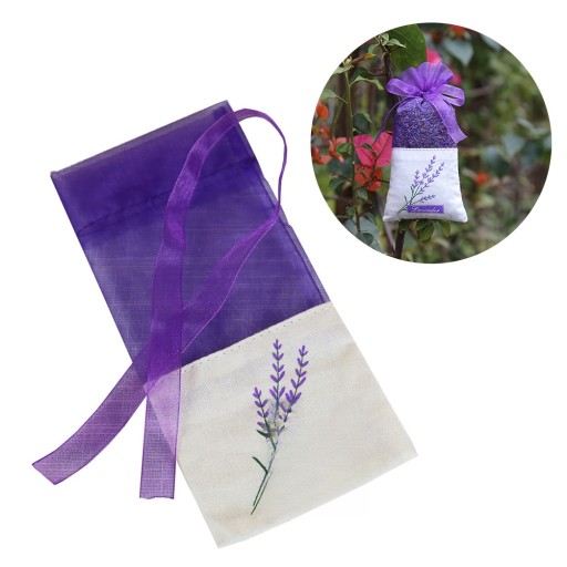 Ta torebka typu woreczek ma 15 cm długości i 7,2 cm szerokości i ozdobiona jest pięknym wzorem lawendy. Mogą być używane nie tylko do pojemników na przyprawy zapachowe, ale świetnie nadają się również do przechowywania zegarków kieszonkowych, łańcuszków, bransoletek, kamieni lub innych elementów biżuterii. Świetne do używania podczas podróży.