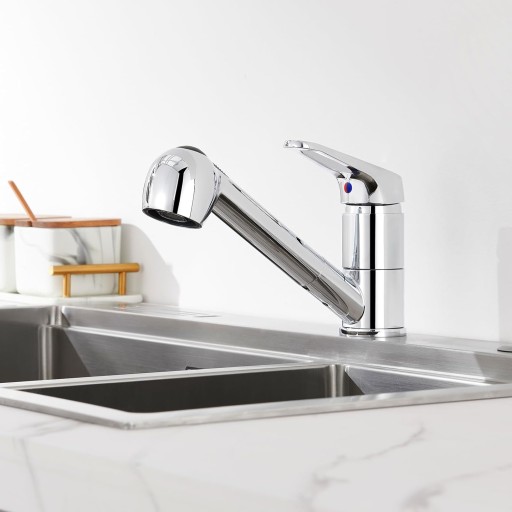 Смеситель для кухни Выдвижной излив Поворотный смеситель для кухни Хромированная стоячая рука
