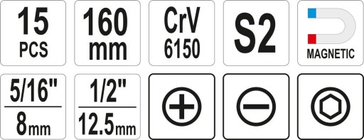 ZESTAW-WKRĘTAK UDAROWY Z MAGNETYCZNYMI KOŃCÓWKAMI 15SZT