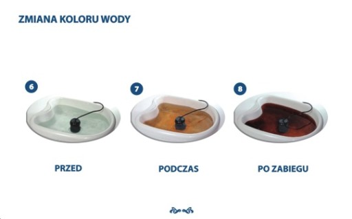 Stopy zostają zanurzone w wodzie na około 30 minut i poprzez pory - ok. 2000 na każdej stopie, jony przedostają się do organizmu doprowadzając w krótkim czasie zachwiany potencjał komórkowy do właściwego poziomu. W trakcie zabiegu woda zmienia barwę od lekko żółtej do brązowej, a nawet czarnej. Można zauważyć w niej plamy tłuszczu, wyczuć zapach nikotyny. To wyraźny znak, że organizm poprzez skórę pozbywa się niepotrzebnych substancji.