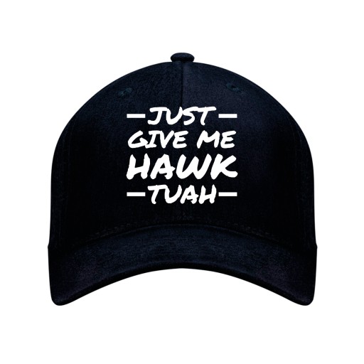CZAPKA Z DASZKIEM I METALOWYM ZAPIĘCIEM Z NADRUKIEM JUST GIVE ME HAWK HAFT